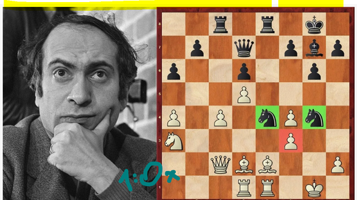 Любимая многими волшебная партия М. Таля: здесь мы видим мат в финале партии Михаил Таль - Роберт Форбис, Чикаго, 1988, 1-0