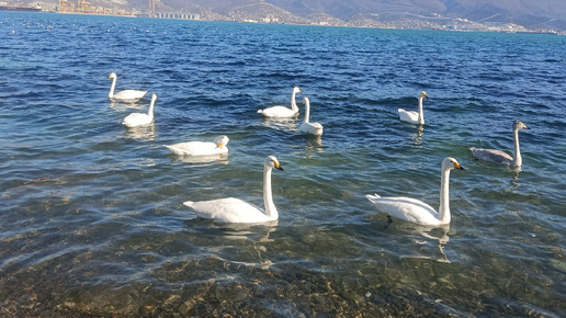 Казахстанский магазин в Новороссийске/Любуюсь лебедями/На море ещё купаются