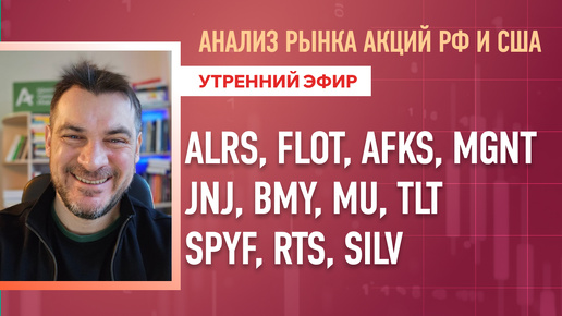 Анализ рынка акций РФ и США/ ALRS, FLOT, AFKS, MGNT, JNJ, BMY, MU, TLT/ SPYF, RTS, SILV