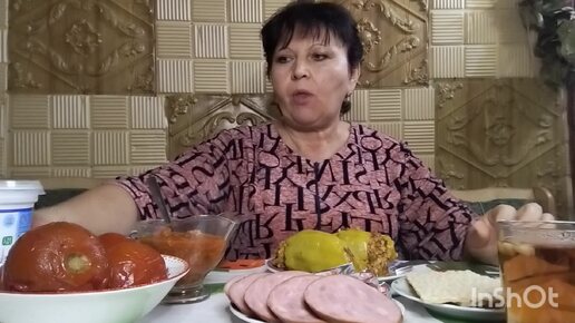 Мукбанг. Перцы фаршированные, колбаса с сыром и хлебцами, чай 😋👍.