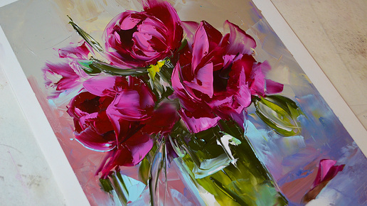 Бархатные цветы пишу мастихином
