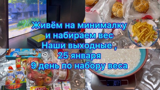 Живём на минималку и набираем вес . Наши выходные , 25 января . 9 день по набору веса , считаем КБЖУ