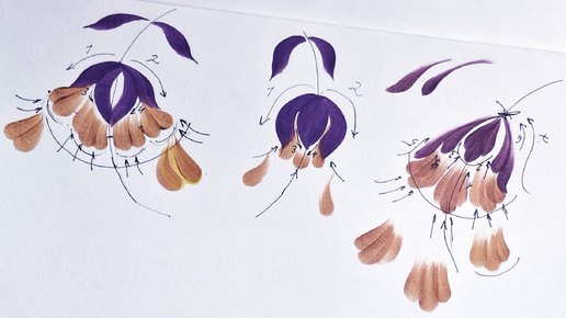 Схемы цветов в Жостово. Три варианта Тюльпана. АКРИЛ. | 27.01.2025 | Урок для начинающих ДЕМО