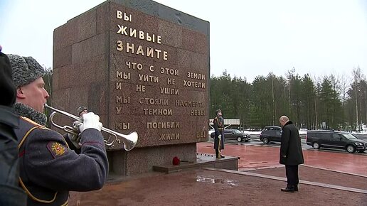 Путин в годовщину снятия блокады Ленинграда возложил цветы к монументу "Рубежный камень" – кадры