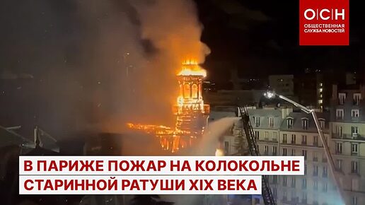В Париже произошел пожар на колокольне старинной ратуши, построенной в 1876 году. С последствиями борются 150 пожарных и спецтехника.