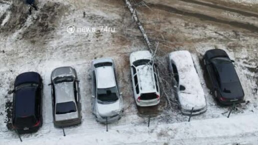 Коммунальщики пытались снести дерево и повредили два автомобиля.