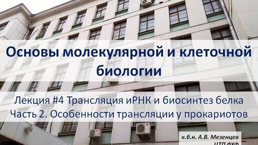 Основы молекулярной и клеточной биологии (2024). Лекция 4. Трансляция, биосинтез белка. Часть 2. Особенности трансляции у прокариотов.