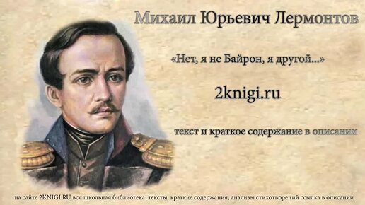 Лермонтов М.Ю. "Нет я не Байрон, я другой..." - стихотворение.