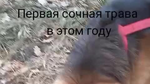 Первая сочная трава в этом году. Барнюша на выпасе.