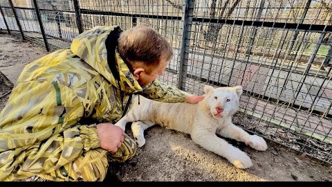 Белый тигрёнок ЛАСТИТСЯ к Олегу Зубкову,но тут де ШИПИТ на Дениса)))