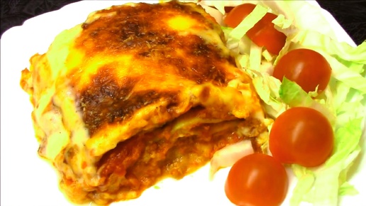 Лазанья с соусами бешамель и болоньезе.