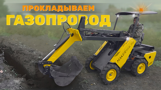 Траншея для прокладки ГАЗовой трубы с помощью Мини-Погрузчика MAKER 600