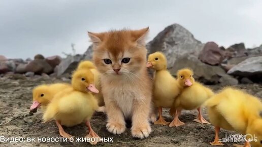 Котенок взял шефство над маленькими утятами, которые остались без мамы!