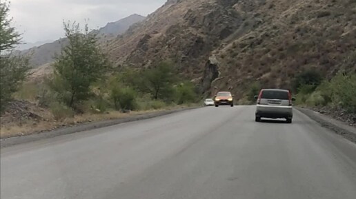 Горы. Ош - Бишкек на машине. Самые не красивые виды. Талас. Как всегда за рулём и снимаю я. Подъем на гору. Дальше будет интереснее