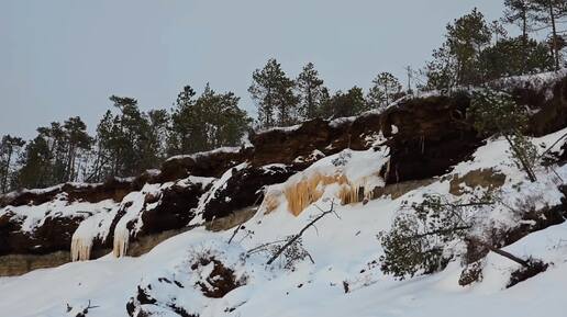 По реке вдоль болота. Красивый зимний закат.
