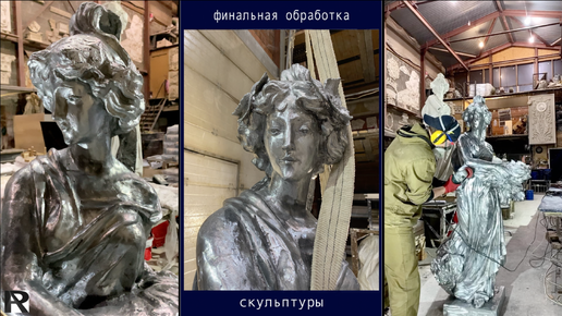 Финальная обработка литой скульптуры из металла в мастерской rareart.ru