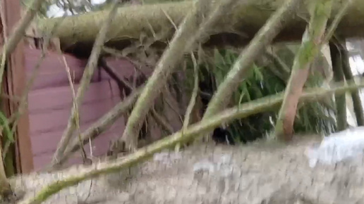 Большое дерево упало на сарай на заброшенном участке