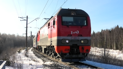 ЭП2К-119 с почтово-багажным поездом №990 Москва – Владивосток следует через о.п. Гусевка