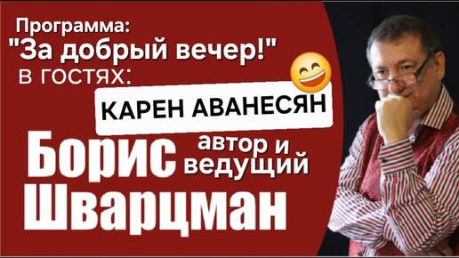 Программа "ЗА ДОБРЫЙ ВЕЧЕР!" Автор и ведущий: Борис Шварцман / В гостях популярный юморист, Заслуженный артист России Карен Аванесян.