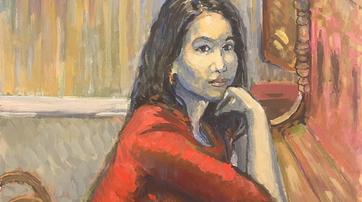 Девушка в красном у фортепьяно