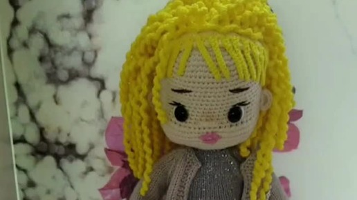 Вязаная кукла с полным комплектом одежды.