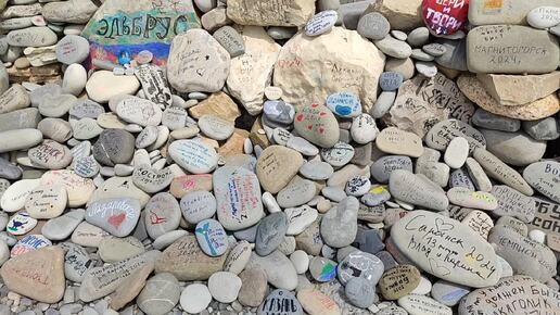 Стена из камней с автографами на пляже Морской бриз, Лазаревское.