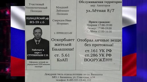 МУ МВД РОССИИ Балашихинское мкр. Авиаторов участковый СВИРИДОВ И.И. ст.161 УК РФ, ст. 286 УК РФ