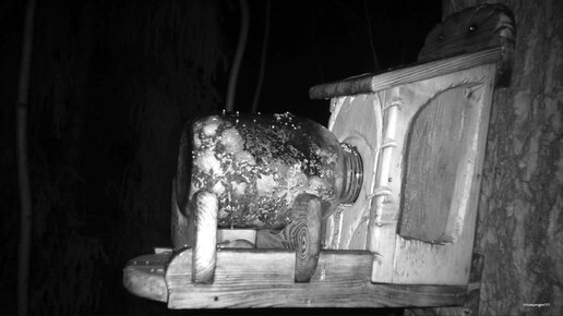 Тайный гость ночью на кормушке.