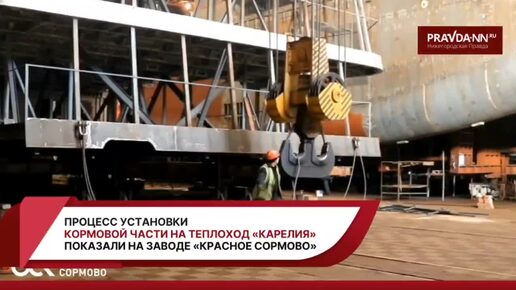 На заводе «Красное Сормово» показали, как устанавливают кормовую часть на «Карелию»
