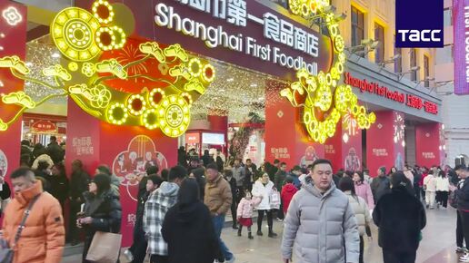 Атмосфера на улицах Шанхая в день празднования китайского Нового года
