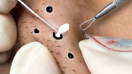 Смачные белые УГРИ разрослись в мужской щетине. Повторная чистка у косметолога, показываем прогресс клиента