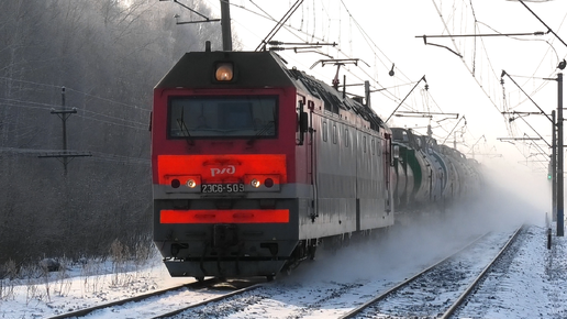 2ЭС6-509 "Синара" с грузовым поездом следует через о.п. 275 км