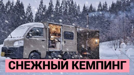 Снежный кемпинг | Автодом из фургона | Печь на дровах