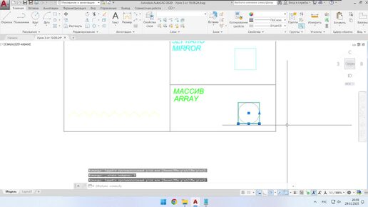 Квадрат в автокаде поворотом, массивом и зеркальным отражением