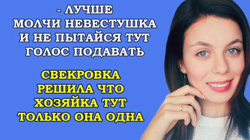 Лучше молчи невестушка и не пытайся тут голос подавать, свекровка решила что хозяйка тут только она одна...Правдивые истории из жизни