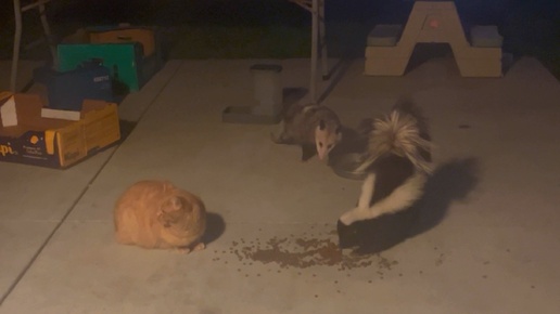 Дружба народов — внезапно опоссум, кот, и скунс 😄