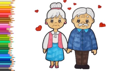 Как нарисовать бабушку и дедушку Рисунок ко дню пожилого человека 🥰