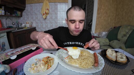МУКБАНГ НАРЕЗКИ ЛУЧШЕЕ - СПАГЕТТИ / СОСИСКИ / ЯИЧНИЦА / САЛАТ КРАБОВЫЙ / MUKBANG АСМР 30. 01. 2025
