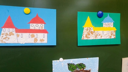 Аппликация с использованием яичной скорлупы "Средневековая крепость"