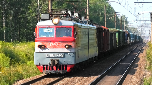 ВЛ10У-749 с грузовым поездом следует через о.п. Русановская