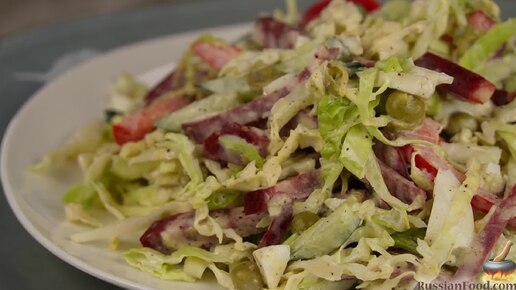Когда нужно быстро и сытно. Овощной салат с колбасой