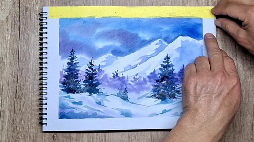 Как нарисовать зимний пейзаж в горах/рисование зима