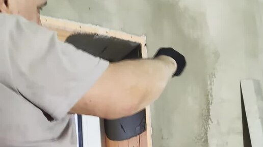 Базовый Армирующий Слой во внутренних углах оконных проёмов, утеплённых фрезерованым ЭППС Пеноплэкс. Фасадную Сетку втопили в клей Baumit