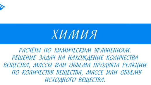 8 класс - Химия - Расчёты по химическим уравнениям. Решение задач на нахождение количества вещества