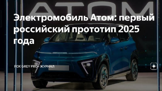 Электромобиль Атом первый российский прототип 2025 года (Fox Grey news)