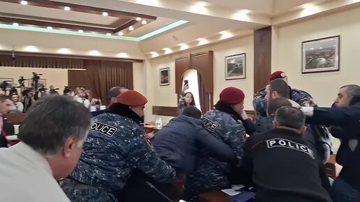 Драка в мэрии Еревана: "красные береты" вывели из зала представителей оппозиции