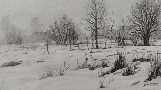 За окном началась оттепель, и я пошла срочно рисовать пейзаж по этому поводу.