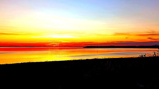 Январь. Закат на Краснодарском водохранилище. Вышли на прогулку полным составом
