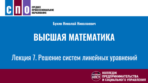 Высшая математика - Лекция 7. Решение систем линейных уравнений