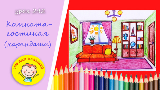 Как нарисовать КОМНАТУ. УРОК 242 Тема: "Комната-гостиная "- карандаши